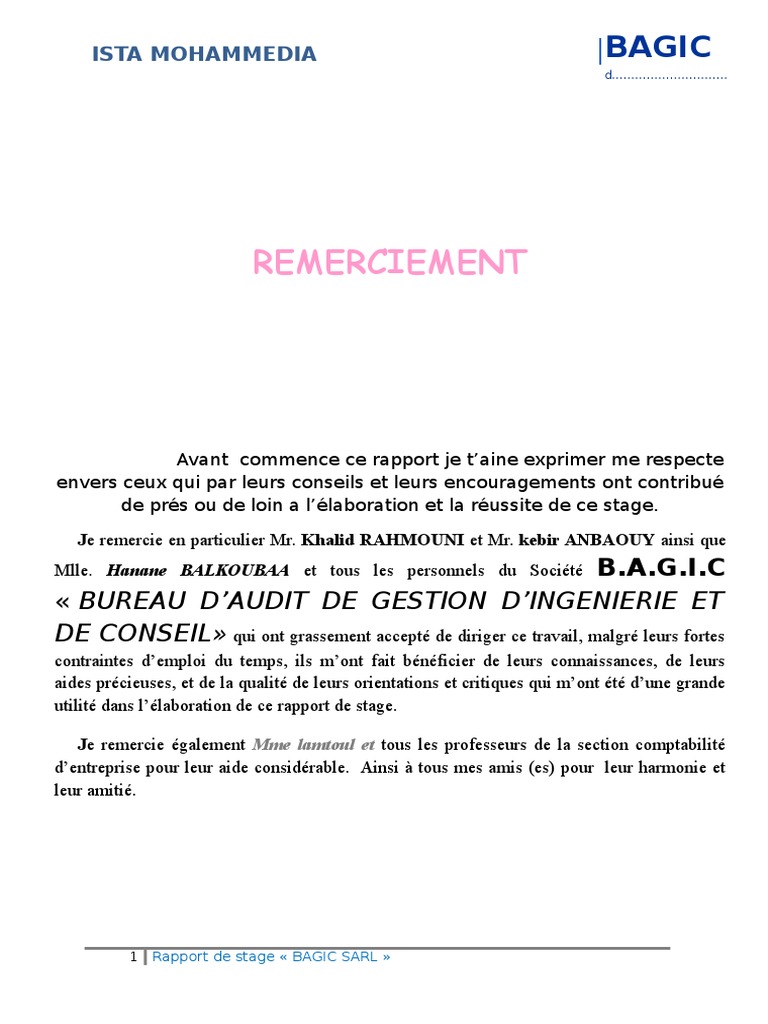 Rapport De Stage Cabinet Comptable Maroc Word Fiduciaire Rapport De Stage Comptabilite Comptable
