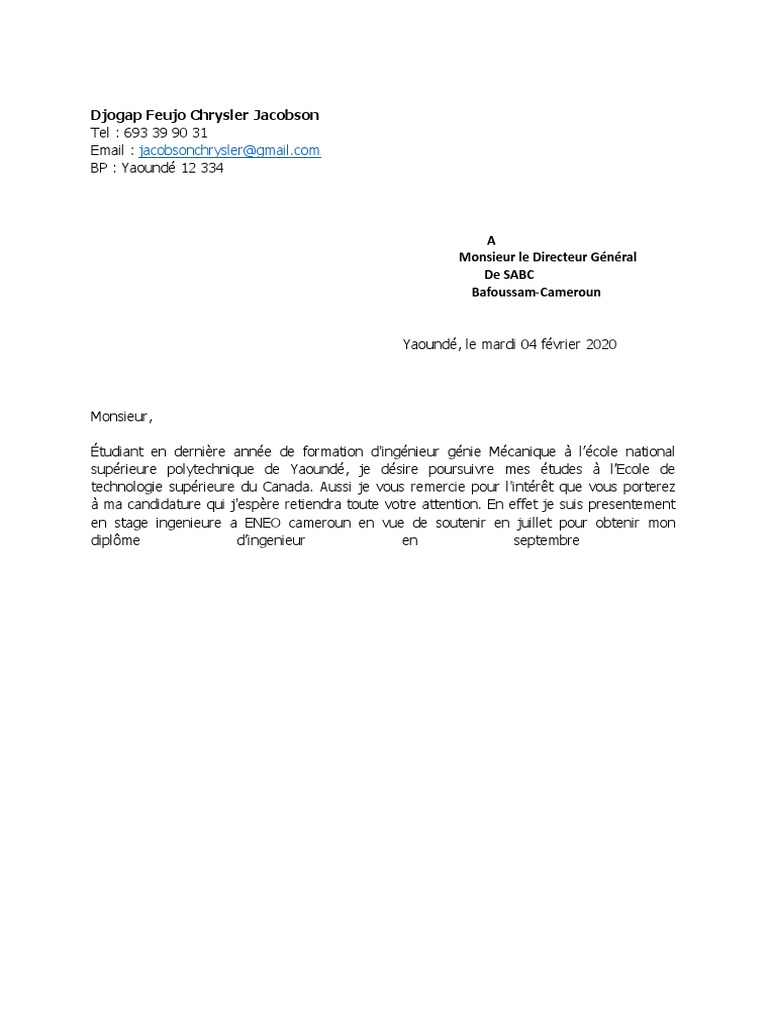 Pdf Lettre De Motivation Ingenieur Mecanique Taoufik Sbai Academia Edu